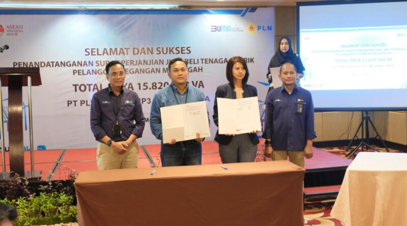 RUBIS.ID, MEDAN – PLN Unit Induk Distribusi (UID) Sumatera Utara (Sumut) melakukan penandatanganan Surat Perjanjian Jual Beli Tenaga Listrik (SPJBTL) permohonan pasang baru dan penambahan daya serentak sebanyak 6 pelanggan Tegangan Menengah dengan total daya 15.820 Kilo Volt Ampere (kVA).