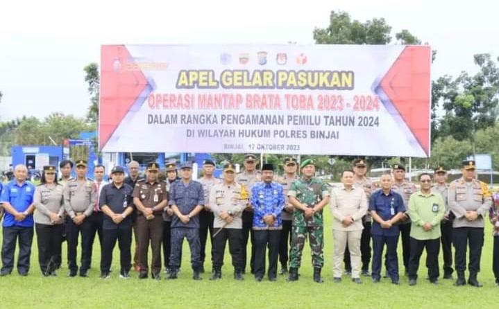 RUBIS.ID, BINJAI - Wali Kota Binjai, Drs. H. Amir Hamzah, MAP beserta Unsur Forkopimda Mengikuti Apel Gelar Pasukan Operasi Mantap Brata Toba 2023-2024 dalam Rangka Pengamanan Pemilu Tahun 2024 di Wilayah Hukum Polres Binjai, bertempat di Lapangan Bhayangkara Polres Binjai, Selasa (17/10/2023).
