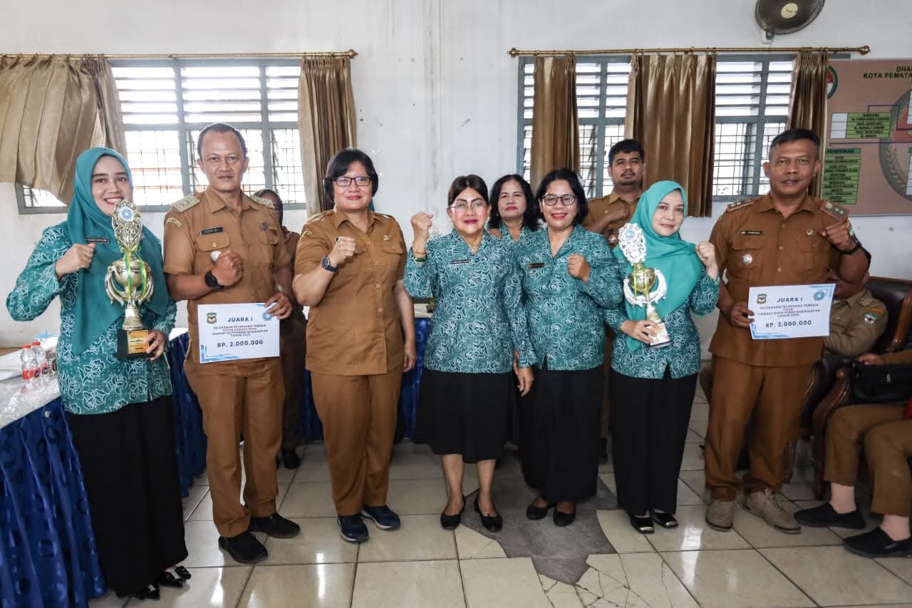 Lomba UP2K: juara 1 Kelurahan Tomuan Kecamatan Siantar Timur dan juara 2 Kelurahan Marihat Jaya Kecamatan Siantar Marimbun.