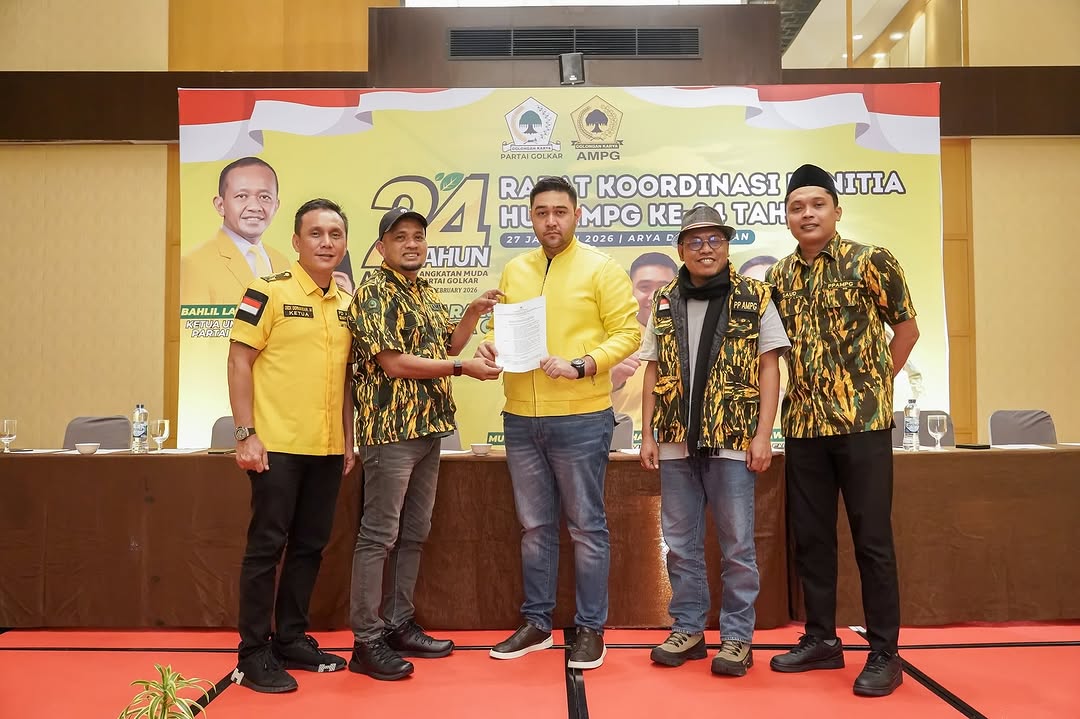 Surat Keputusan (SK) Plh Ketua Umum diserahkan usai Rapat Koordinasi Panitia Hari Ulang Tahun (HUT) ke-24 AMPG yang berlangsung di Hotel Aryaduta, Kota Medan, Selasa (27/1/2026).