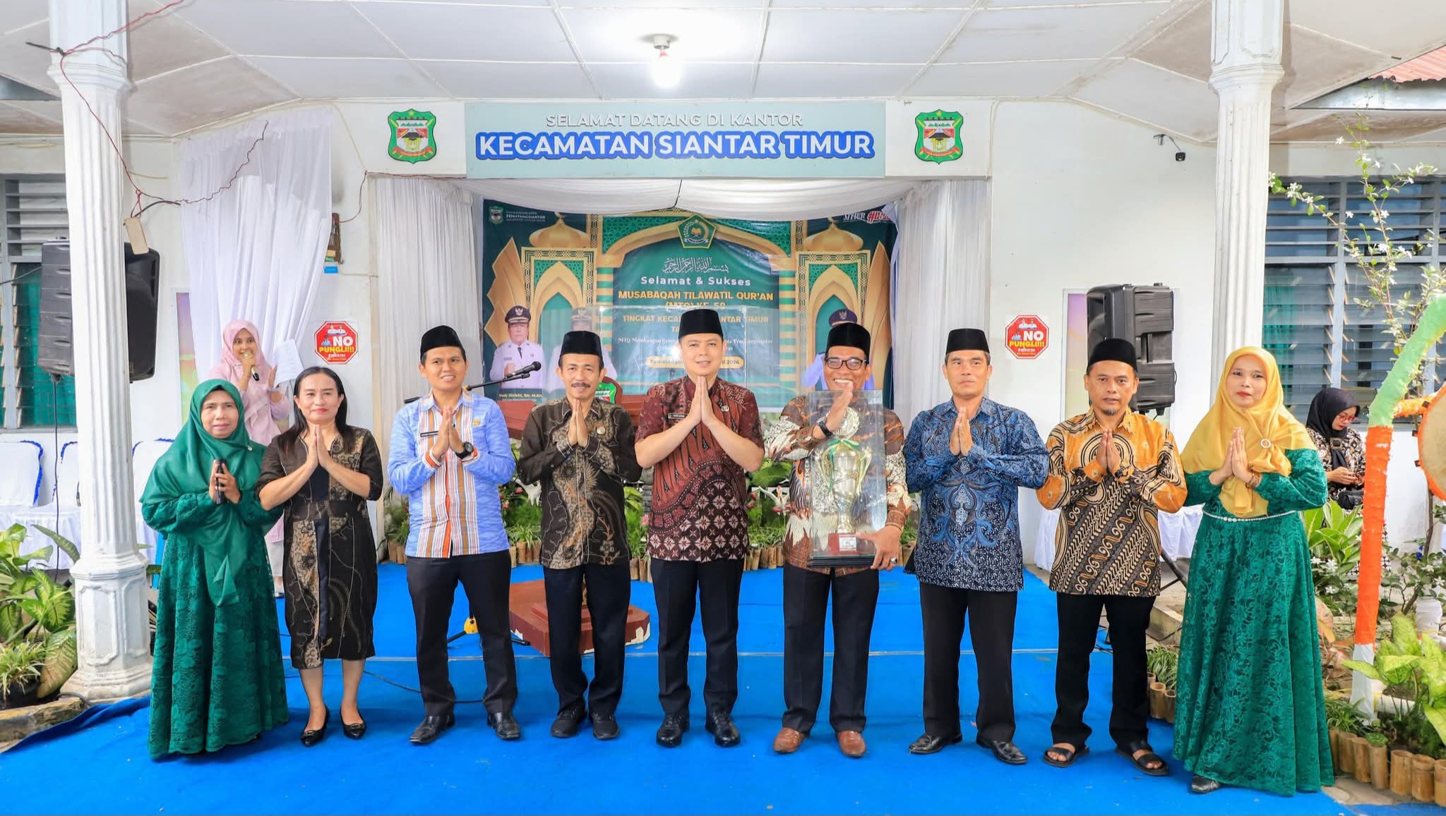 RUBIS.ID, PEMATANGSIANTAR - Wali Kota Pematangsiantar Wesly Silalahi SH MKn diwakili Staf Ahli Bidang Pembangunan Muhammad Hamdani Lubis SH menutup Musabaqah Tilawatil Qur'an Nasional (MTQN) ke-58 Tingkat Kecamatan Siantar Timur Tahun 2026. Sekaligus menyerahkan piala bergilir juara umum kepada Kelurahan Tomuan. Kegiatan dilaksanakan di halaman Kantor Camat Siantar Timur, Jalan Siatas Barita Ujung Kelurahan Tomuan, Kamis (16/04/2026).