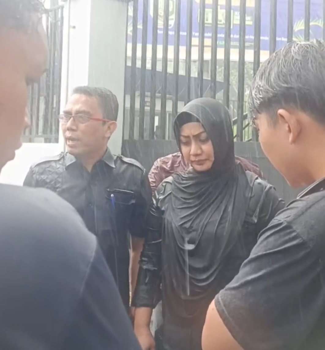 Teks foto: Lailatul Badri bersama anggota DPRD Medan lainnya menemui massa aksi di tengah hujan deras di depan Gedung DPRD Medan, Senin (20/4/2026).(Foto: Istimewa)