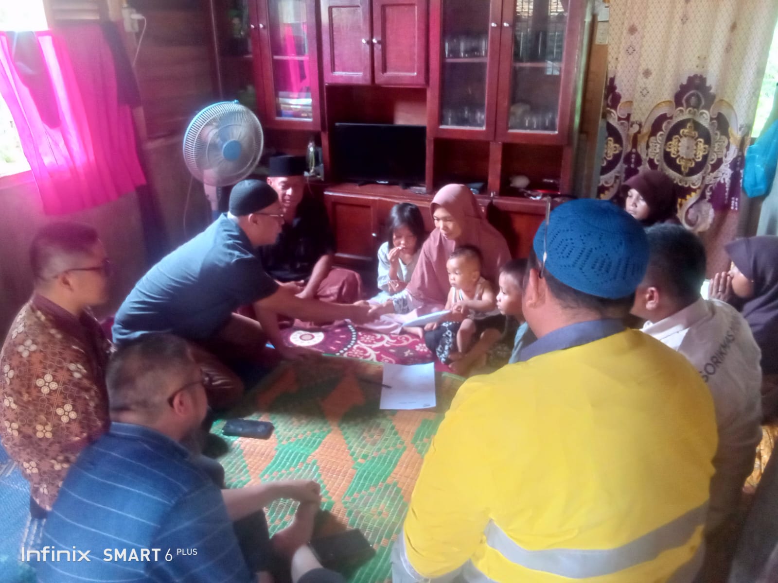 Penyerahan bantuan yang berlangsung di kediaman almarhum berlangsung penuh haru. Istri dan keempat anak almarhum menerima langsung santunan tersebut, didampingi keluarga dan kerabat yang turut hadir.